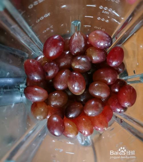 葡萄洗净,放破壁机里启动果汁键榨成汁,也可以用其他的水果