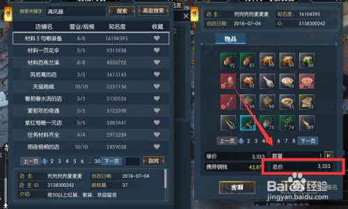 这时搜索出来的店铺都是有清风藤在出售的,任意点击一个店铺进入可以查看购买价格。