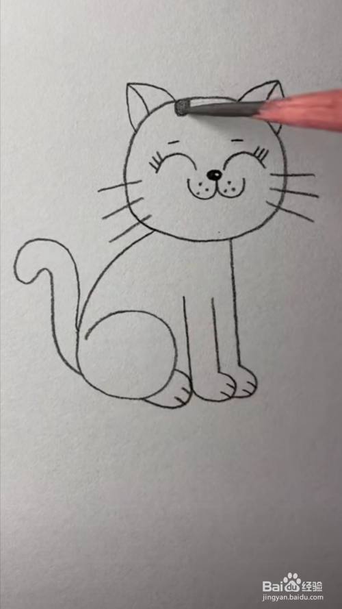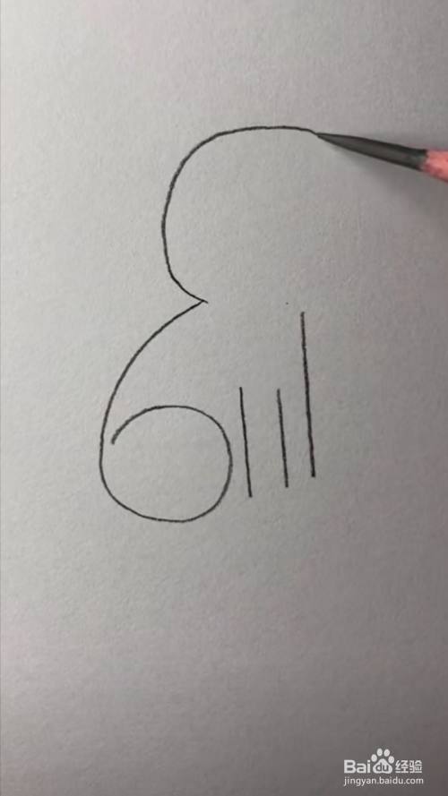 先画一个数字6,再画小猫的头和几条竖线,要注意长短哦。