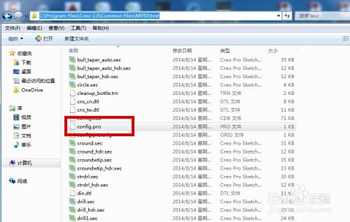 找到“C:\Program Files\Creo 2.0\Common Files\M050\text”目录下的“config.pro”文件;