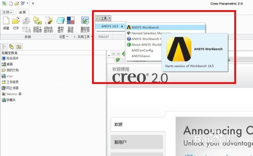 打开Creo2.0,就能看到ANSYS14.5已经被关联到里面了。