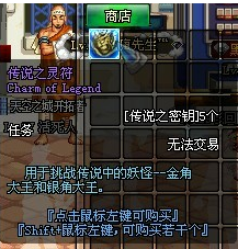 挑战金角、银角大王,抢辅助装备/魔法石袖珍罐: 玩家通过收集到的“传说之灵符”可以到地下城点击挑战按钮后,进入任意地下城,即可挑战金角大王和银角大王(boss为LV60以上)。