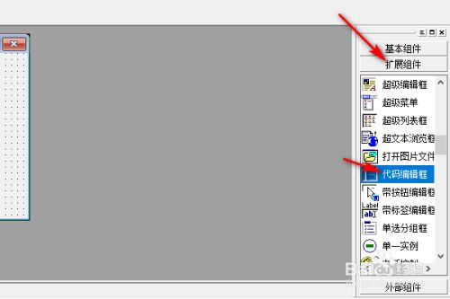 然后在右侧找到并点击扩展组件和代码编辑框。