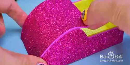 裁剪一块正方形的硬卡纸,在两边放上长方形的硬卡纸封边,另一边将卡纸剪成汽车的形状,封边。