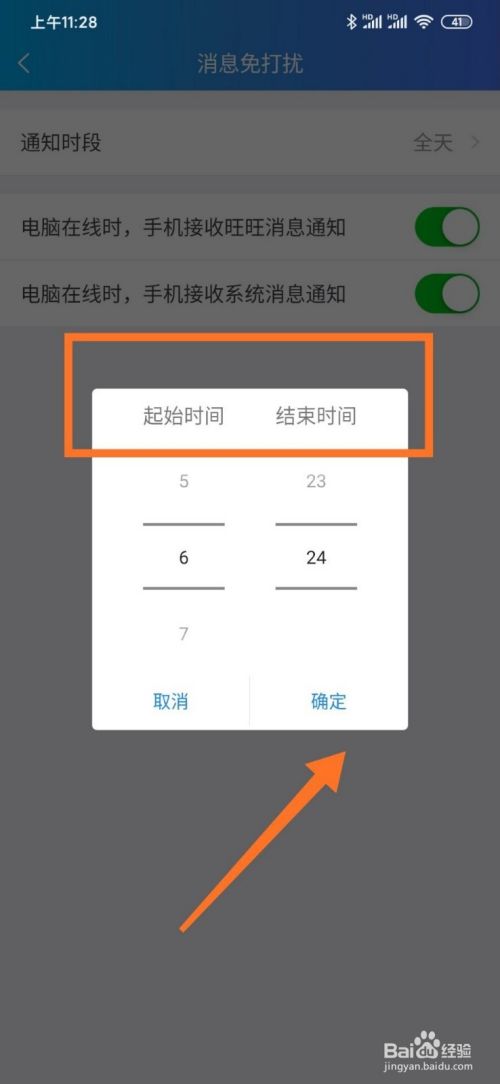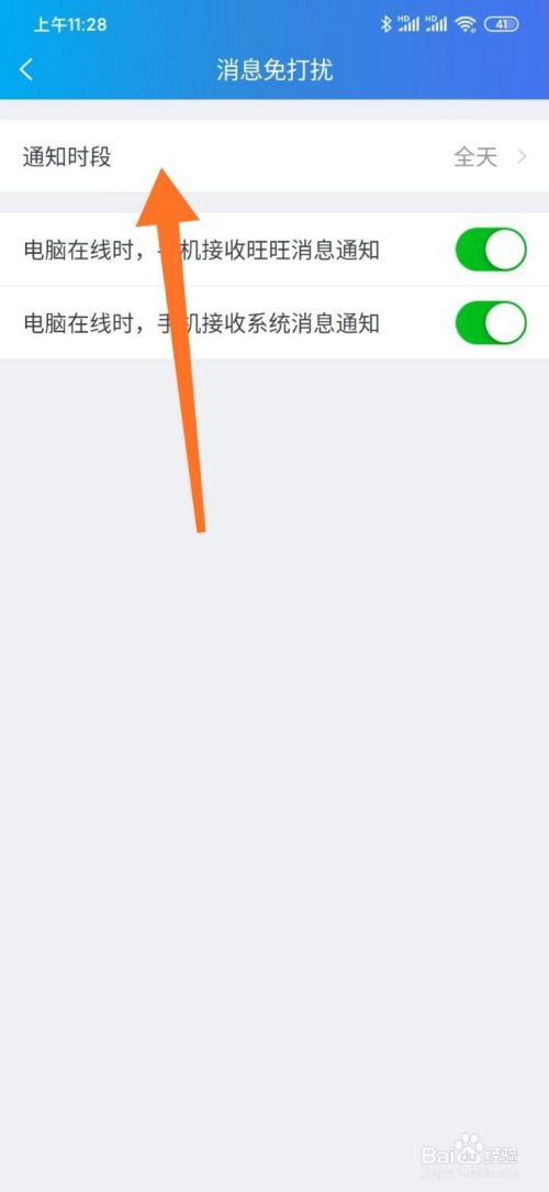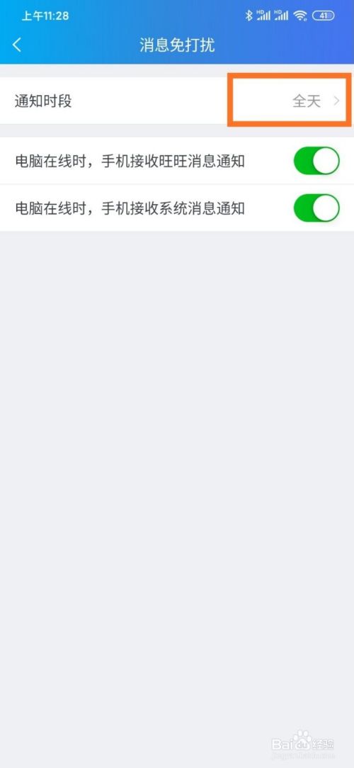 来到免打扰页面,我们可以看到默认情况下通知时段是全天的;