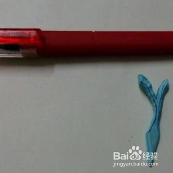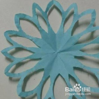 然后再用笔在上面画上蓝色小花的形状,沿画的线剪开,剪的时候要细心一点哦,不要剪断了。