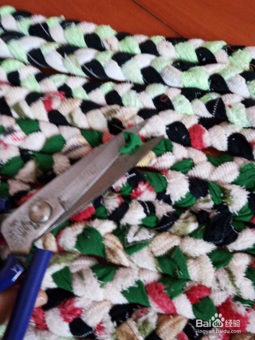 缝完后,整理下形状,再把多余的布头,全都修剪掉,到这里一个地垫就做好了,如果有必要,可以在地垫的一面衬上一层厚实的布