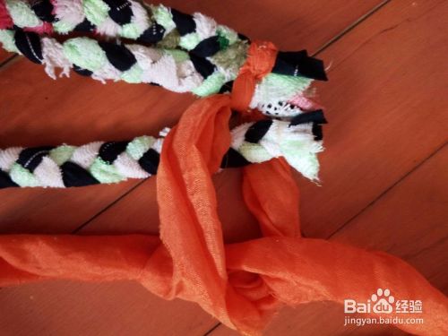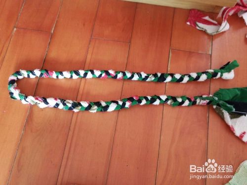 布条裁好了,我们就来始编瓣子,就是普通的三股瓣子,先把一端用细布条绑住,然后拿起右边的一股把中间的一股压住,然后用右手把中间的拽住,再用左边的把原来右边而现在在中间的一股压住,如此反复,瓣子就会越来越长,