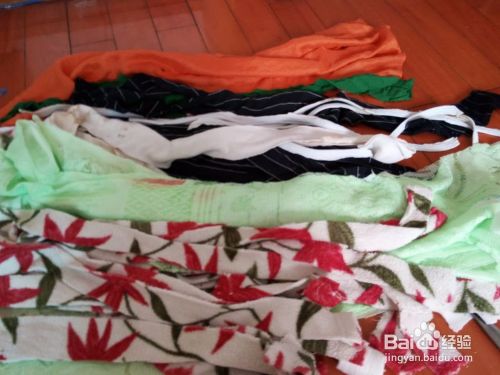 第一步就是把所有的衣物裁成布条,布条的粗细根据我们的需要,因为衣物的材质不一样,为了保证编出的瓣子粗细一样,所以薄的就剪宽点,厚的就剪窄点,自己看情况调整,