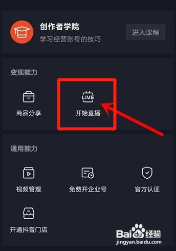 在创作者服务中心界面,点击开始直播。