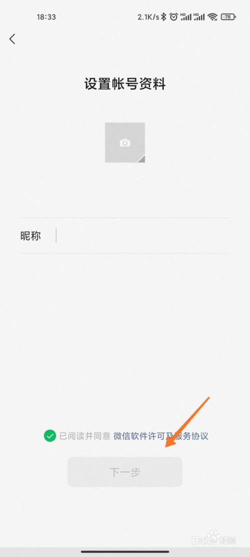 填写昵称、上传头像,点击下一步,完成注册。