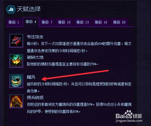 使用技能后,6秒内的下一次普通攻击造成40%的额外伤害,本身的普攻伤害并不低,配合其他天赋可以起到粘人追着打的效果