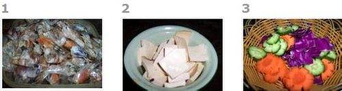 3胡萝卜黄瓜 紫甘蓝切成片。