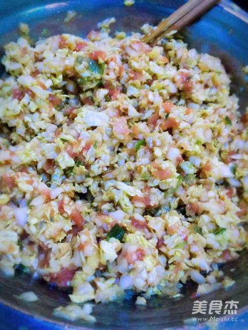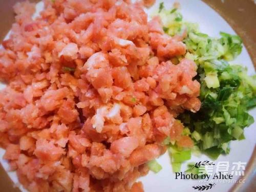 2肉馅准备好,葱姜切末,备好。白菜切好末备用。