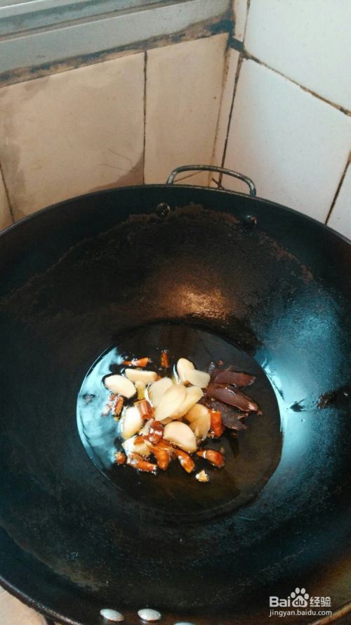 在锅中倒入适量油,加入切好的姜蒜桂皮干辣椒;