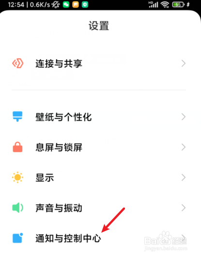 选择手机的通知与控制中心的选项。