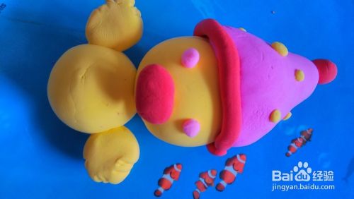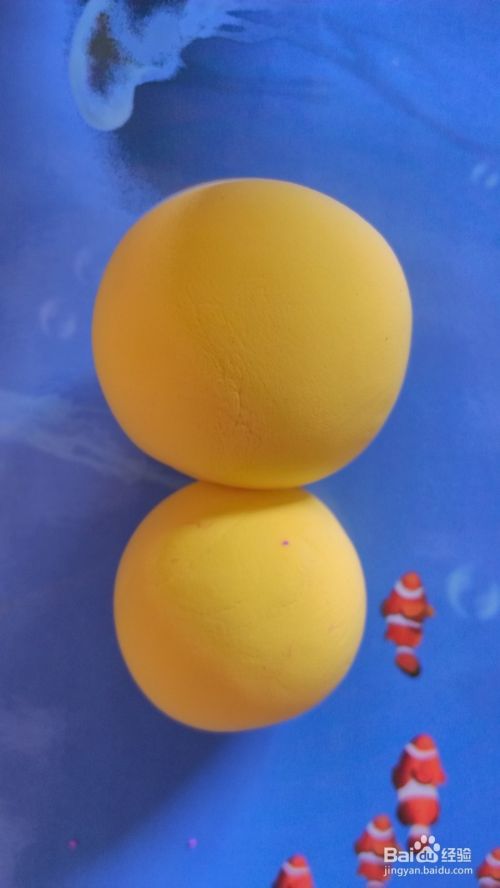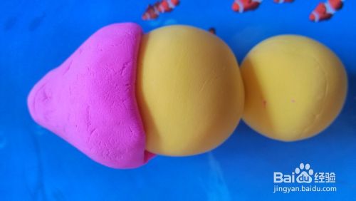 黄色搓一个稍小些的圆球做身子如图,连一起