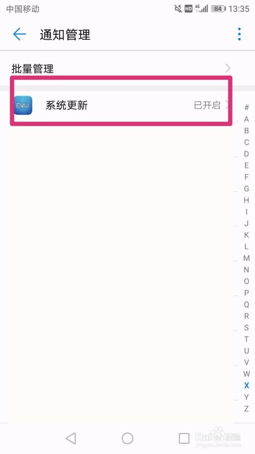 进入”通知管理“,在里面找到”系统更新“点击进入。