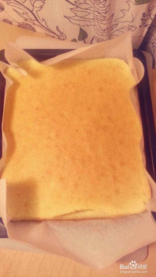 烤盘铺烤纸后,倒入面糊,震两下,除去大气泡。烤箱200度,中层,18分钟。(以表面上色,竹签插入不带出生面糊为准。时间自行调节)