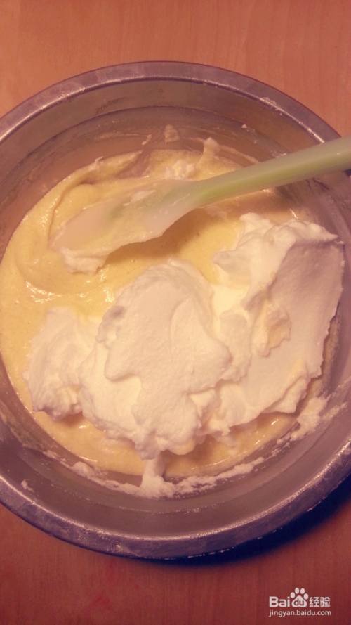 打发后,取一半加入7步骤的面糊翻拌均匀。