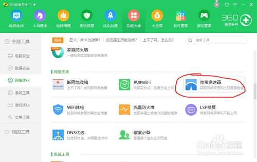 在“功能大全”中找到“宽带测速器”,并点击,会加载一会儿