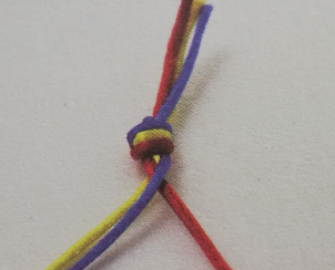 最右边的红线往左边弯折,放在黄线上方,现在左边有两根线,跟开始时情况是一样的