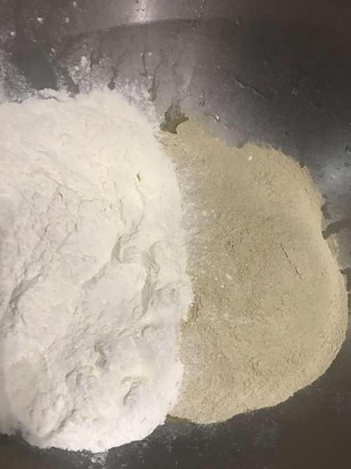 3搅匀后面不烫了用手把面揉成团,包上保鲜膜备用,准备包子馅