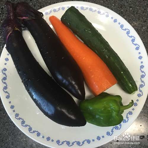 然后把青椒,胡萝卜,黄瓜,甜菜,大葱切成段和茄子一起备好。 蔬菜可以选大家喜欢吃的,什么都OK