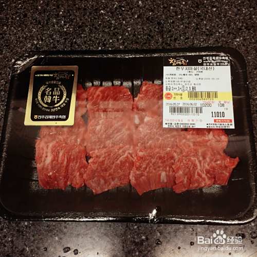 牛肉要选比较嫩的部位(我买的是韩牛) 韩牛是韩国饲养的牛,韩国的牛吃的饲料是特别调配出来的,韩国在这方面很有研究。饲养出来的韩牛要比进口的牛好吃,肉嫩,当然价格也要比进口牛肉贵很多。