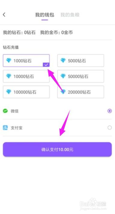 第四步,选择【钻石数量】,选择微信支付,进行支付。