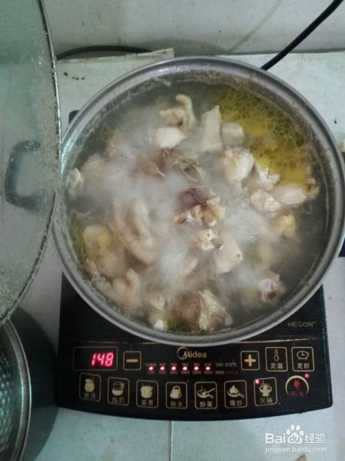 1.洗鸡块 从市场买来一只鸡,剁成小块,清水洗干净。鸡块放在锅里煮出血沫。