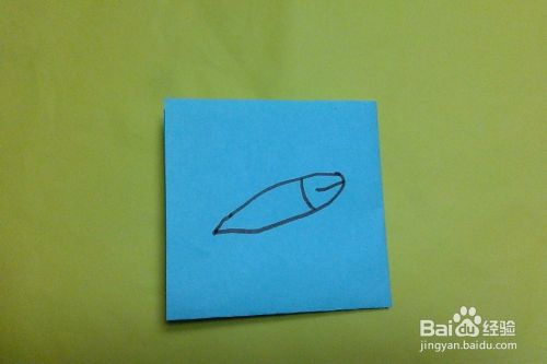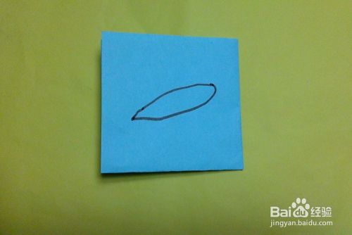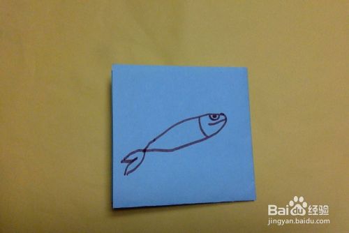 如图所示,在材料的中心部位绘画小鱼的身体轮廓。