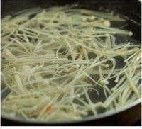 锅中加清水烧沸,加入少许橄榄油,再入胡萝卜丝烫1分钟左右
