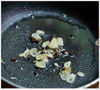 锅中加少许油,烧热后加花椒、大蒜片爆香。