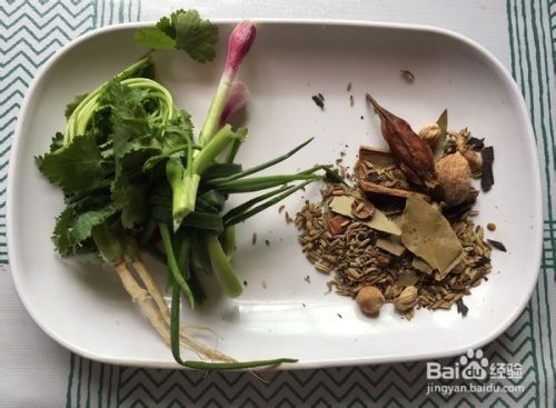 香菜,香葱洗净沥干水分后打结。(不沥干水分,下锅时容易溅油)