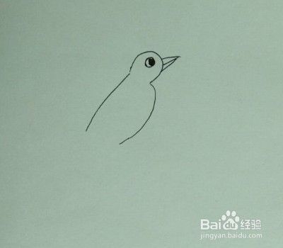 画小鸟的尖尖嘴巴和圆圆的眼睛。
