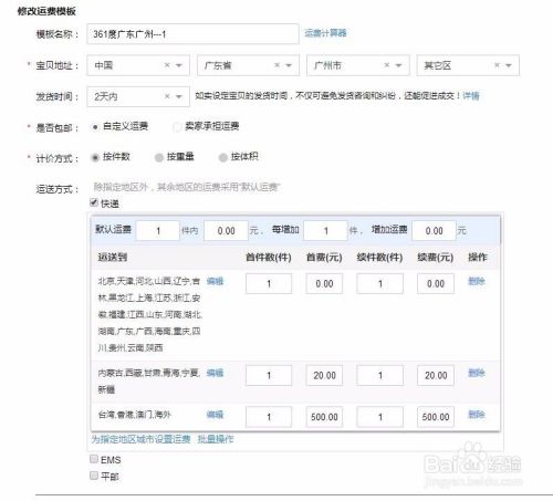点开右侧的“查看详情”,就进入了“邮费模板编辑页面”了,下面就可以自己修改邮费了