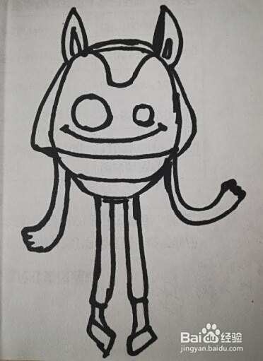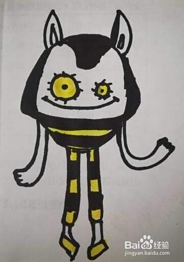 第三步,如图所示,画出外星人的眼睛和嘴巴