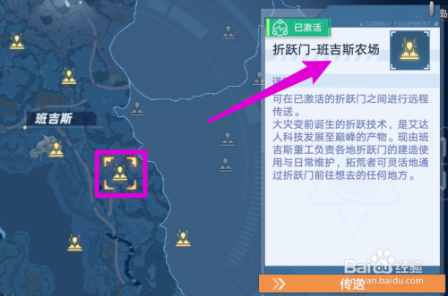 打开地图,选择班吉斯农场的折跃门,点击传送。