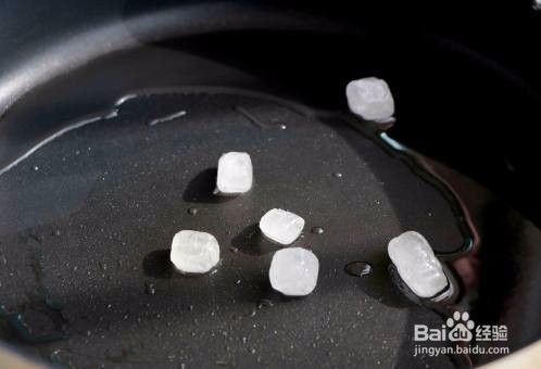 锅内放入适量的色拉油,放入几块冰糖,不停的翻炒至变黄;