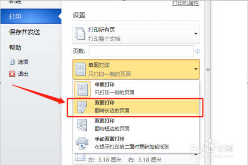 在弹出框里选择“双面打印(翻转长边的页面)”;