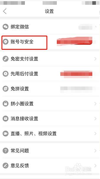 点击账号与安全选项。
