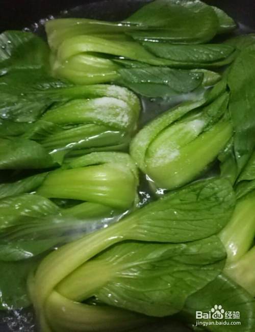 再加入少许的盐,把小油菜放入锅里煮熟。