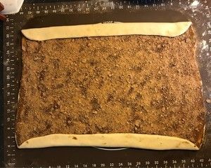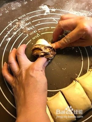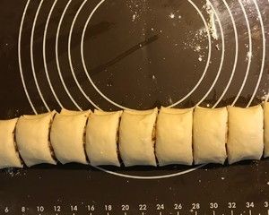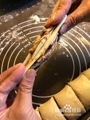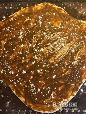 之后就是尽情的放红糖馅了,铺满,别放过任何一个角落哦!