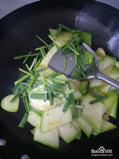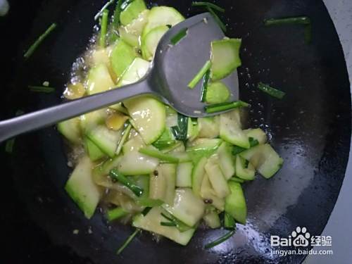 最后把蒜苗段倒入,翻炒至西葫芦变软就炒好了。西葫芦有水分在炒的时候不要加水,不然就是水煮了。
