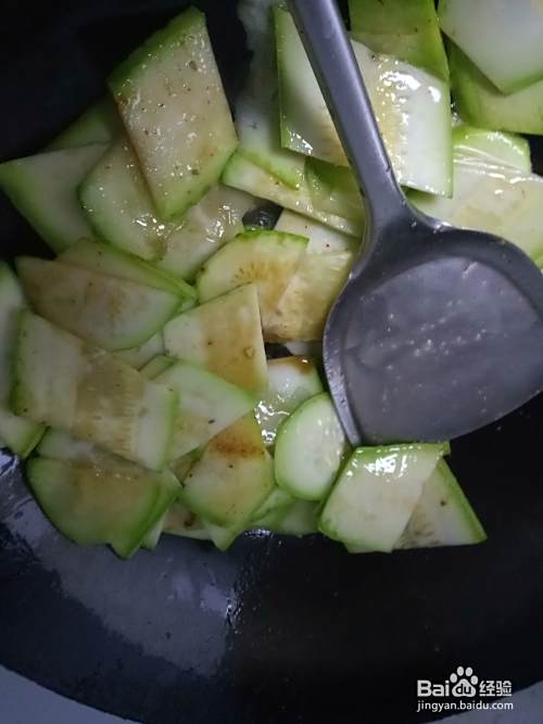 炒锅内倒油,放入生姜、花椒炒出香味,接着把西葫芦倒入翻炒,翻炒几下后加入适量盐、南德、生抽继续翻炒均匀。