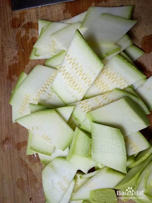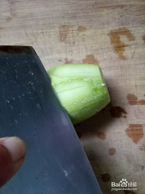 西葫芦洗净,如果表皮有破损或污点去掉,切片。