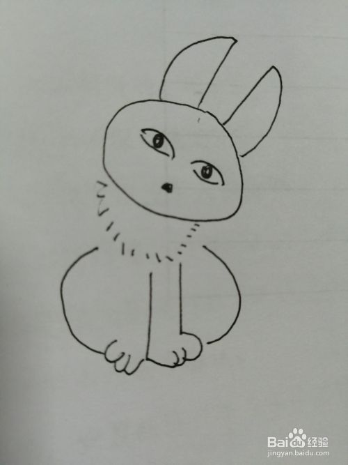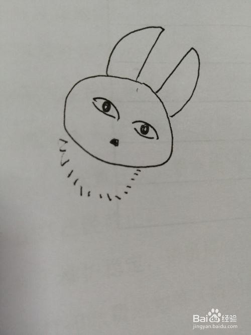 第四步,在小兔子椭圆形的脸部下面画出一圈毛发。