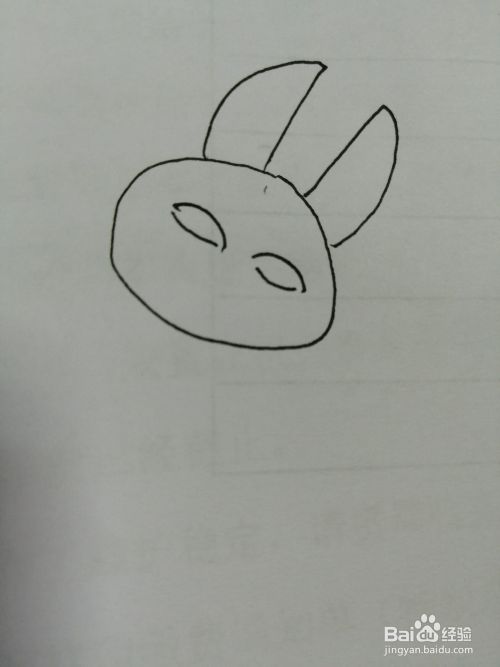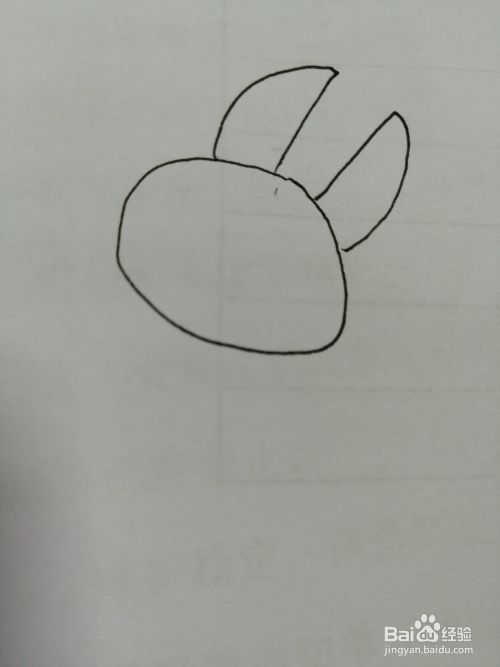 第一步,我们先画出可爱的小白兔的椭圆形的脸,在头部上面画出两只长耳朵。