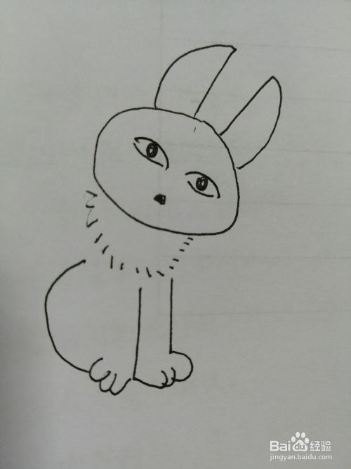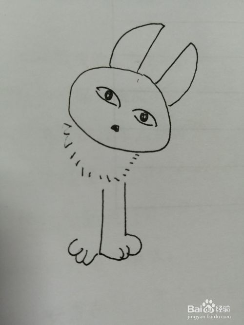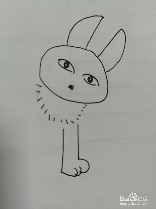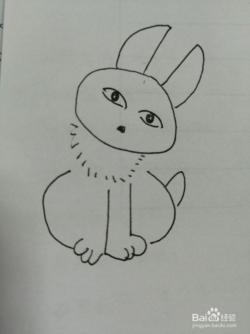第六步,然后把两只手臂的两边画出小兔子的两只腿。